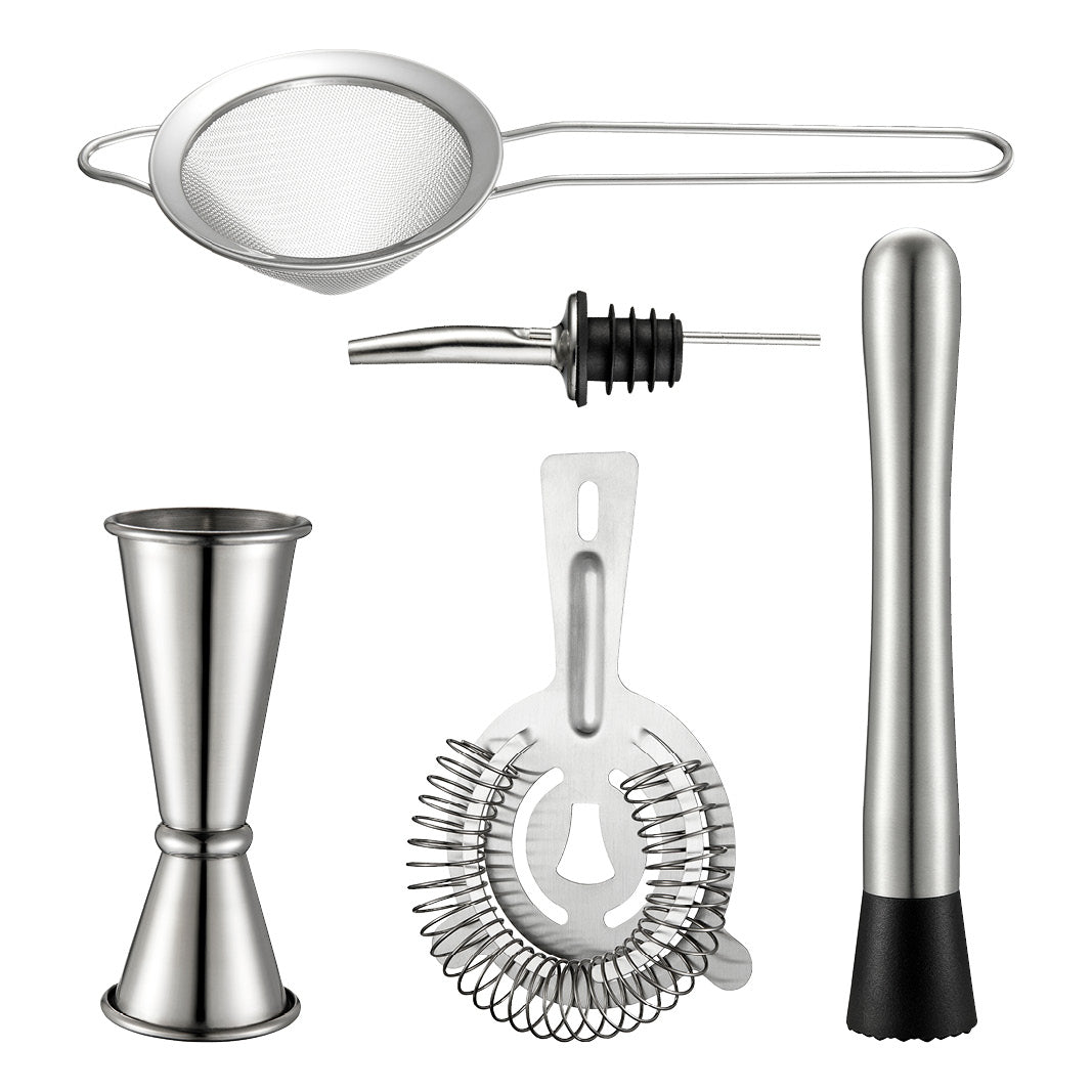 Övrigt: | Sil 23 cm Muddlare 21 cm Drinksil 14,5 cm Mätglas 11 cm Hällpip 11 cm |